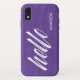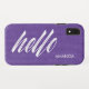 Hello White Script Name Purple Linen Texture Photo Case-Mate iPhone Case