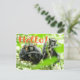 Hello greeting postcard with three chimpanzees sitting on a tree limb wildlife photo. Great for sending to children or nature and animal lovers.