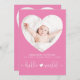 Hello World Photo Heart Frame Pink Girl Birth Announcement