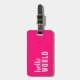 Hello World Pink White Girly Luggage Tag