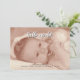 Share the wonderful news of the birth of your baby with this announcement card featuring your adorable newborn front and centre along with a cheery and eye-catching "Hello World" greeting at the top that you can reword however you like or delete entirely. Also personalise with your baby's photo and name, birth stats, and message to recipients as indicated above. Your photo will appear on both sides of this card (shown here with a white background colour on the back side).