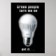 This poster is designed to help people think green energy. LED light bulbs last longer than any other, use the least amount of energy, and they're mercury free.