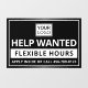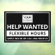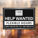 Advertise for help with this help wanted customisable window cling. Add your own business logo and customise the template text. All colours except the dark grey gradient border are customisable and you can change fonts, move and resize elements with the design tool.