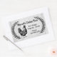 Label your farm fresh egg cartons using this handy sticker label. Features elegant branches of curved leaves along the sides with chicken woodcut image and elegant text and whitewashed style background. Customisable with your farm, egg details, phone number or any other pertinent information. Great for free range, farm fresh, organic, hand gathered chicken coop hen eggs.