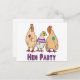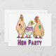 Hen Party or Hen Night shows three hens out on the town celebrating the forthcoming wedding. The bride to be wears a crown and veil and her friends are there supporting her.