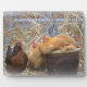 These hens are taking a break in Killingworth, Connecticut. Longfellow once stayed in Killingworth and while he was here he wrote The Birds of Killingworth. The Birds of Killingworth, Longfellow is written lightly in the upper left corner. This plaque is both pretty and humourous, stands on its own, and doesn't need a frame.