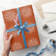 This white mandala sits on a henna orange background. The colour is dark and natural. Part of the Briallenn Mandala Collection.