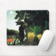 Henri Rousseau Snake Charmer mouse pad. Oil painting on canvas from 1907. One of Henri Rousseau’s most captivating jungle paintings, The Snake Charmer depicts a mysterious flute player cloaked in darkness charming snakes out of the jungle foliage. The charmer stands on the edge of a river beside a pink water bird as the dark snakes slither towards the sound of the flute. The moon shines in the night sky, and palm trees sway in the distance. A beautiful gift for fans Henri Rousseau, primitivism, post-impressionism, jungle paintings, and French art.
