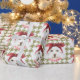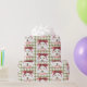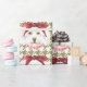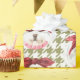 Digital watercolor Havenese dog portrait with beads and bow, on classic herringbone pattern background