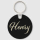 Ein sehr schöner edler personalisierter Button Schlüsselanhänger im whitegold Lettering Look auf schwarz für Henry.