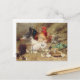 Hens roosting with their chickens postcard