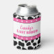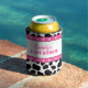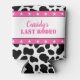 Celebrate in brides in style with these custom can sleeves. They feature a fun black and white cow hide pattern with pink and white star accents and a personalised "her last rodeo" message in pink letters.