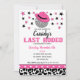 Celebrate bride's in style with these fun "Last Rodeo" invitations that are perfect for disco cowgirl themed bachelorette parties. They feature a graphic of a disco ball with a pink cowboy hat with a western black and white cow pattern accents and are easy to personalise with your party details in black and pink.