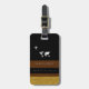 A modern, elegant and feminine design with faux gold and brown stripes on black background with a small image of an aeroplane and the map of world, personalised with the traveller name and custom words "here we go again".