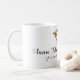 A stylish and personalised white mug for that special woman, with name written in a cursive font style and with a faux gold map of world... with custom text ( a message, a quote, sweet words...)