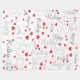 The delightful pattern is accentuated by the presence of splattered red hearts, adding a whimsical and romantic element to the overall aesthetic. Each heart is carefully placed, creating a visual symphony that dances across the blanket's surface.