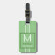 A simple and modern square design with your own name and initial on it... a nice and personalised sage bagtag