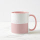A feminine pink and white coffee-mug personalised with name and profession (architect)