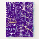 Purple background colour with an editable pattern of names of different font styles and colours, with small white hearts of love.