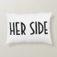 "Her Side" typed in an Art Deco inspired font on lumbar pillow. "His Side" also available.
