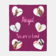 Wrap your favorite person in love with this personalized Valentine’s Day photo collage blanket. Featuring a lovely magenta background and six heart-shaped photo frames, this custom throw is the perfect way to display your favorite memories together. Customize it with a personal name and the sweet sentiment "You are so loved." Whether it's for a long-distance partner, a new baby, or a cherished family member, this customizable photo gift is a high-quality keepsake that brings warmth and comfort to any home.