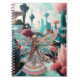 A beautifully intricate fairy with colourful, patterned wings stands in a whimsical, otherworldly landscape filled with fantastical plants and futuristic structures. Vibrant and ethereal, the scene exudes a dreamlike quality with its pastel hues and imaginative setting.