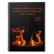 This notebook depicts the abstract energy of fire in a wood burning stove. The orange, gold and yellow flames appear as joyful dancing characters. They are set off by a black background. The quotation is from the pre-Socratic Greek philosopher, Heraclitus of Ephesus, who lived from c.535–c.475 BCE. It reads: ... it always was and will be: an ever-living fire, with measures of it kindling, and measures going out. It can be customised or removed.