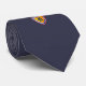 Did you ever want a family crest of your own? Well, this one is all yours. The design features elements that speak of days of yore - in rich shades of royal blue, gold and red, a shield and two scimitars border a central shield to display your surname initial. Stars and three pheon complete the design - select the tie background colour that suits your fine taste and wear this one with pride.