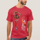 I give wanted to give this a 4 instead of a 5 because these Basic DARK T0shirts run unexpectedly SLIM or Narrow. Which is great if you do not have a potbelly, but I have a paunch. It isn't the shirt's fault that I've got a beer belly. The design and shirt itself is a quality cotton shirt. The color is more of a deep purple, but still a very pretty color. The Basic DARK T-shirts run a bit SLIMMER than the Basic Ts. The neck is a fraction narrower (or seems to be narrower) also. I'm a paunchy middle-aged woman and my neck is 12 inches (31cm) thick and the neckline fell about the same as in the photo of the man, and I had the desire to tug it a bit. So if you're a thick necked man or like loose shirts, be aware these are slimmer shirts. Once I get rid of my lockdown paunch it'll look great. The shirt washed well in cold water with no apparent bleeding. We don't have a dryer, so it hung dry. Did not shrink. Love the colors and the design. The design looks smaller on my shirt than it does on the model on-line. But still, it looks good on the shirt. The printing looks as it does on the model, just the size seems fractionally smaller. Washed garment in cold water, hung dry and design appeared unaffected.
