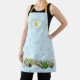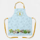 Long bib apron with herbs border at the bottom. Sweet little dragonflies cover the background which is pale blue. At the top, add a first name initial in gold colour, inside a decorative panel. Straps match the gold letter. Makes a lovely gift for an herbalist or gardener.