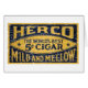 Herco cigar is a vintage tobacco label from the 1900's. A dark blue background with the words Herco The World's Best 5 Cigar Mild and Mellow. A light distressing has been added.
