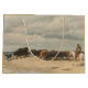 This design features a painting by the Swiss artist Eugène Burnand (1850–1921). It shows a farmer on horseback leading his large herd of cattle towards the sea. The cows are standing on the sand and some of the animals are slowly venturing towards the water. Most of the cows have black hair, while some of them are brown. The horse that the farmer is riding is white, making it more easily visible in front of the cows. All of the cows have horns on their head. There are gentle waves lapping onto the beach from the sea. The sky is cloudy and grey, but the sand is golden. The original artwork was painted by Eugène Burnand in 1878.