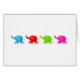 Cute cartoon illustration of four different coloured jungle elephants marching in a row. Image available on various gifts and products.