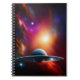 An amazing UFO flying though a brilliant sky filled with vibrant colours and stars.