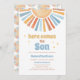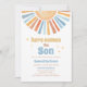 Celebrate the arrival of your little ray of sunshine with our "Here Comes the Son" Baby Shower Invite! This charming boho-inspired design features warm watercolor sun rays in earthy tones of orange, blue, and gold, creating a cheerful and inviting aesthetic. With its playful typography and delicate star accents, it’s an ideal way to set the tone for a sunny and heartwarming celebration. Let the sunshine in and share your excitement with this beautiful baby shower invitation! BBS398