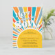 Are you planning a boy's baby shower? This colourful sun-themed boy's baby shower invitation features "Here Comes The Son" in retro typography on a bright sunburst background.