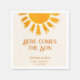This cute baby shower napkin is decorated with a yellow watercolor sun and says "Here Comes The Son" in stylish retro typography on a soft cream background.