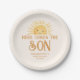 This sun-themed baby shower paper napkin is decorated with a watercolor smiling sun and stylish typography on a soft cream background.