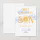 This cute boy's baby shower thank you card features the text "Here Comes The Son" in yellow retro typography with a smiling watercolor sun. Easily customizable. Original Watercolor © Michele Davies.