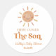 Here Comes The Son Boho Bohemian Retro Baby Shower Classic Round Sticker