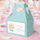 Send your guests home with a sunny little thank you gift using this charming “Here Comes the Son” gable favour box! Designed to match your retro beach baby shower theme, this favour box features the signature vintage sun and palm tree artwork in warm coastal tones of orange, teal, and golden yellow — a perfect way to wrap up your celebration in style.