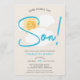 This cute boy's baby shower invitation says "Here Comes the Son" in modern script calligraphy and features watercolor sunshine and clouds. Original Watercolor © Michele Davies.