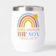 Add a pop of sunshine to your celebration with our Here Comes The Son Thermal Wine Glass! Featuring a vibrant sun and rainbow design in cheerful hues of blue, orange, yellow, and terracotta, this insulated tumbler is perfect for keeping drinks hot or cold. A stylish and practical keepsake for baby showers, it’s ideal for moms-to-be, guests, or party favors!