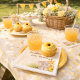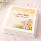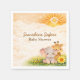 Celebrate your sunshine safari theme with this warm watercolor party napkin featuring golden clouds, a radiant daisy sun, and sweet baby elephant and giraffe artwork. Designed in soft yellow and cream tones, it adds an elegant yet playful touch to safari baby shower table décor and “Here Comes the Son” celebrations.