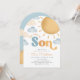 This "Here comes the son" baby shower invitation combines boho charm with a retro flair, making it an ideal choice for your sunshine-themed baby shower with yellow and blue tones. Choose the arch shape for a modern look. Celebrate in style and make your special day memorable with this delightful invitation.