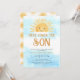 Invite family and friends to your sun-themed baby shower with this cute sunshine boys' baby shower invitation.