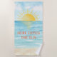 Fun Here Comes the Sun Beach Towel with the sun coming up over the beach and ocean.