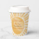 Watercolor painted Sun in Sunshine yellow, orange colours themed bridal shower decor Paper Cups with text " here comes the sun she found the one!" you can personalise to your needs. Perfect for a summer or fall bridal shower selebration. Matching items you can find in collection from my store PatternDigitPics.