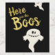 This wine label allows you to customise your halloween party! This label features a black background with ghosts and the text here for the boos in faux gold foil text!