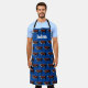 This apron sports a pattern of Hereford bulls culled from a vintage print on a blue background.